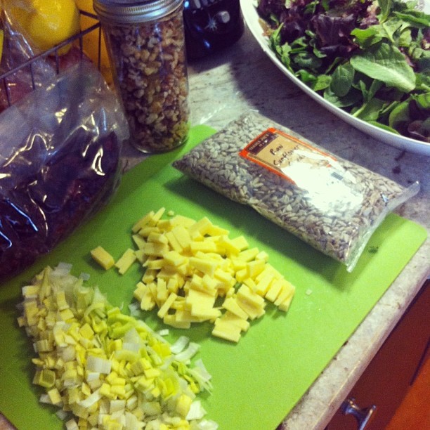 1/2 of a leek, about 1/3 cup (cleaned & trimmed, diced, traders joes sells them already trimmed!)